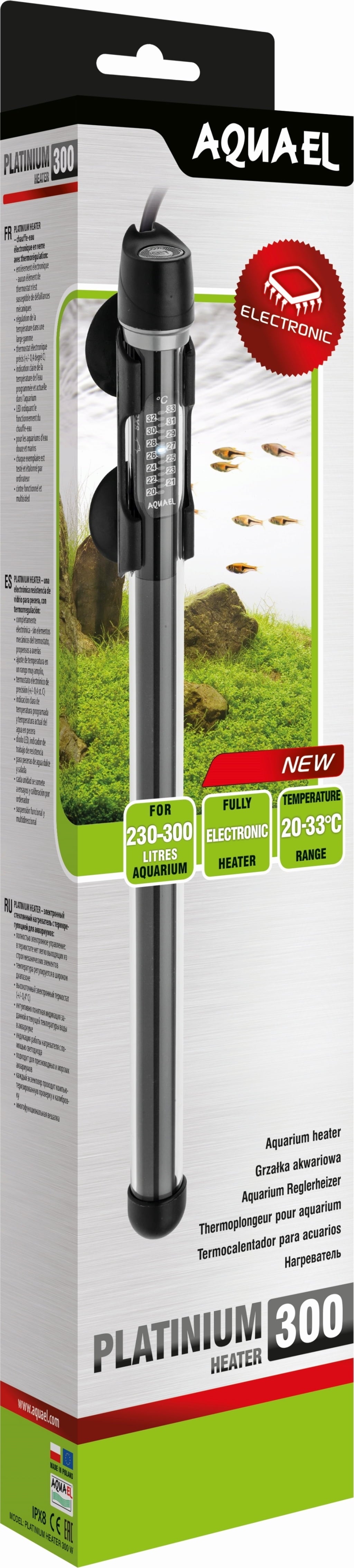PLATINIUM HEATER – innovative Glasheizungen von AQUAEL, die mit einem präzisen, elektronischen Thermostat ausgestattet sind. Sie haben eine Temperaturkontrolle von 20 bis 33°C, die auf +/- 0,4°C genau bleibt. Dadurch ist es möglich, mit der Heizung viele Fischkrankheiten zu behandeln, darunter auch die so genannten „Fischpocken“.
