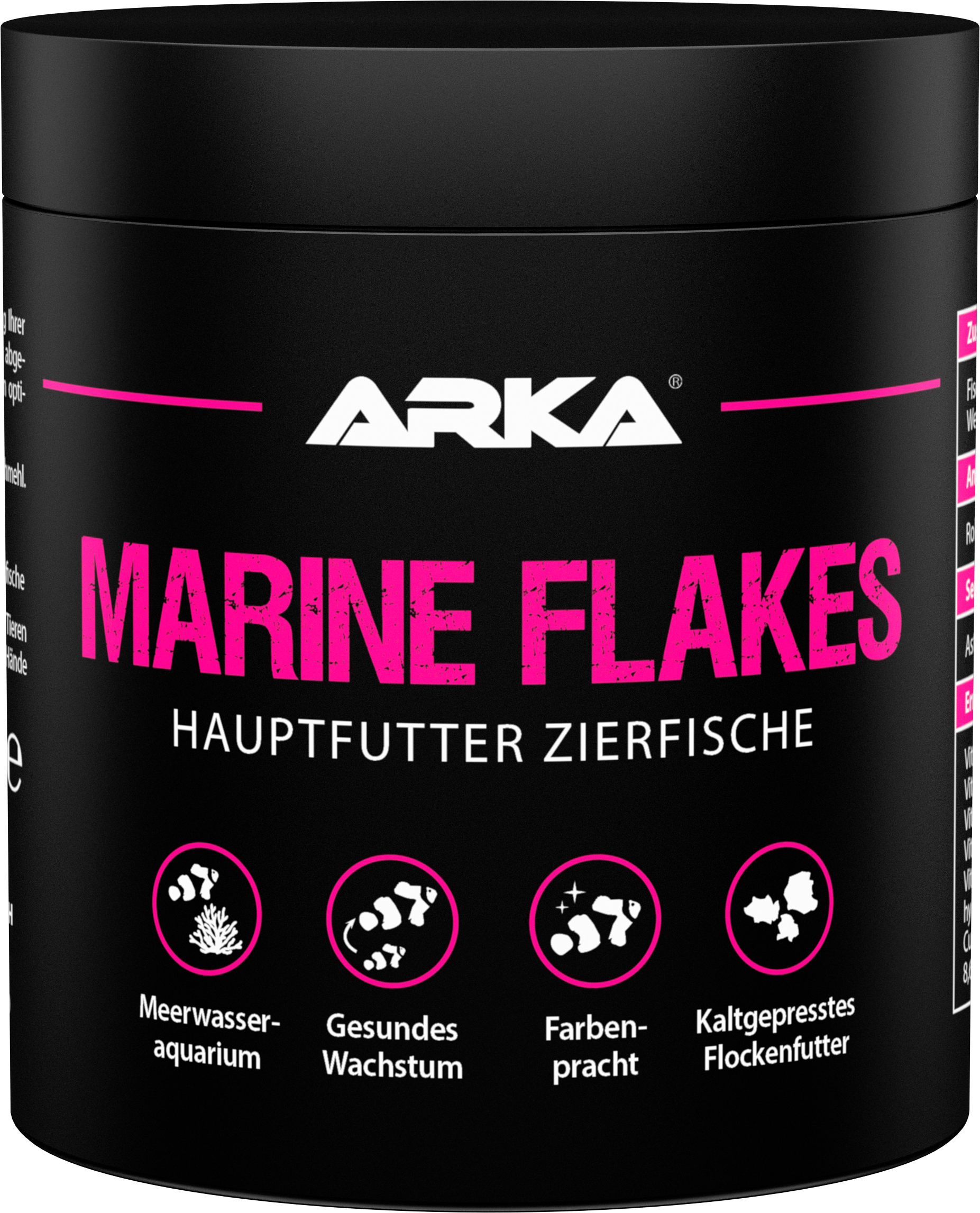 Die Marine Flakes von ARKA werden im Kaltpressverfahren hergestellt. Dieses Flockenfutter hat eine hohe Akzeptanz und kann durch seine Inhaltstoffe die Farbenpracht deiner Zierfische unterstützen. Die speziell aufeinander abgestimmte Zusammensetzung kann die Agilität und Widerstandskraft unterstützen. Das Flockenfutter enthält keine Spirulina.