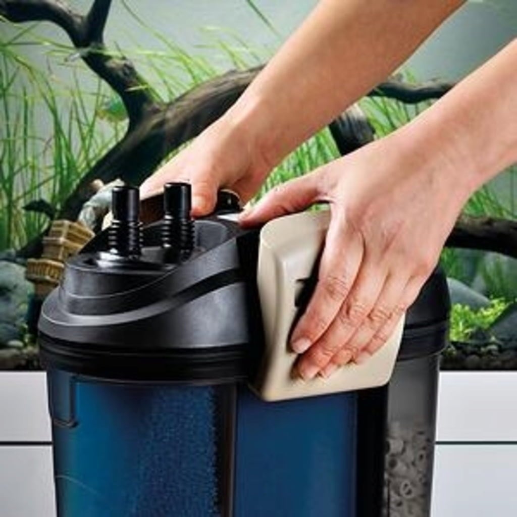 Die Bedienung ist denkbar einfach: Der individuell einstellbare Durchflussregler ermöglicht es dir, die Strömung präzise an die Bedürfnisse deiner Aquariumbewohner anzupassen. Auch die Wartung ist unkompliziert: Dank des speziellen Trenn- und Verschlussmechanismus lassen sich der Filter und die Schläuche tropffrei voneinander trennen. Die extra großen Verschlussclips mit Liftfunktion sorgen dafür, dass sich der Filterkopf mühelos öffnen lässt. Auch störende Geräusche gehören der Vergangenheit an. Die kalibrierten Rotorlager gewährleisten einen vibrationsarmen und nahezu geräuschlosen Betrieb. Sicheren Halt im Unterschrank findet der Filter dank seiner rutschfesten Gummifüße.