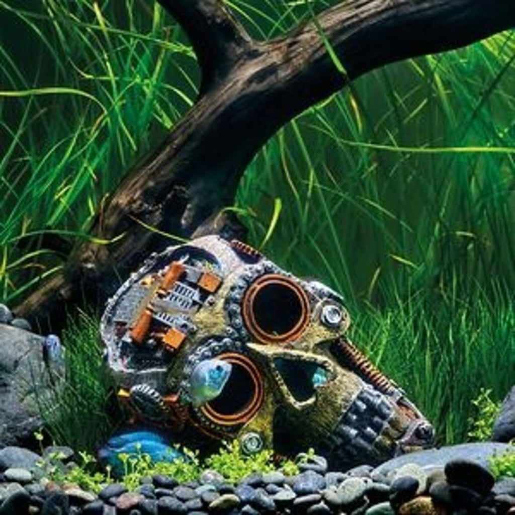 Mit diesem Steampunk Totenkopf von Eden zieht dein Aquarium bestimmt alle Blicke auf sich! Mit den vielen Details aus Zahnrädern, Schrauben und mechanischen Elementen macht er nicht nur als Dekoelement richtig was her, sondern bietet den Fischen zudem auch tolle Versteckmöglichkeiten.