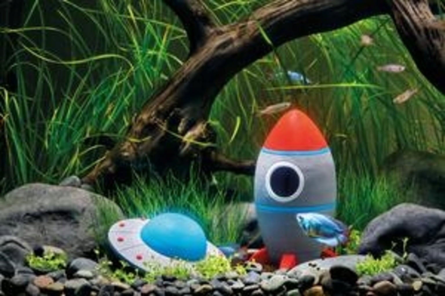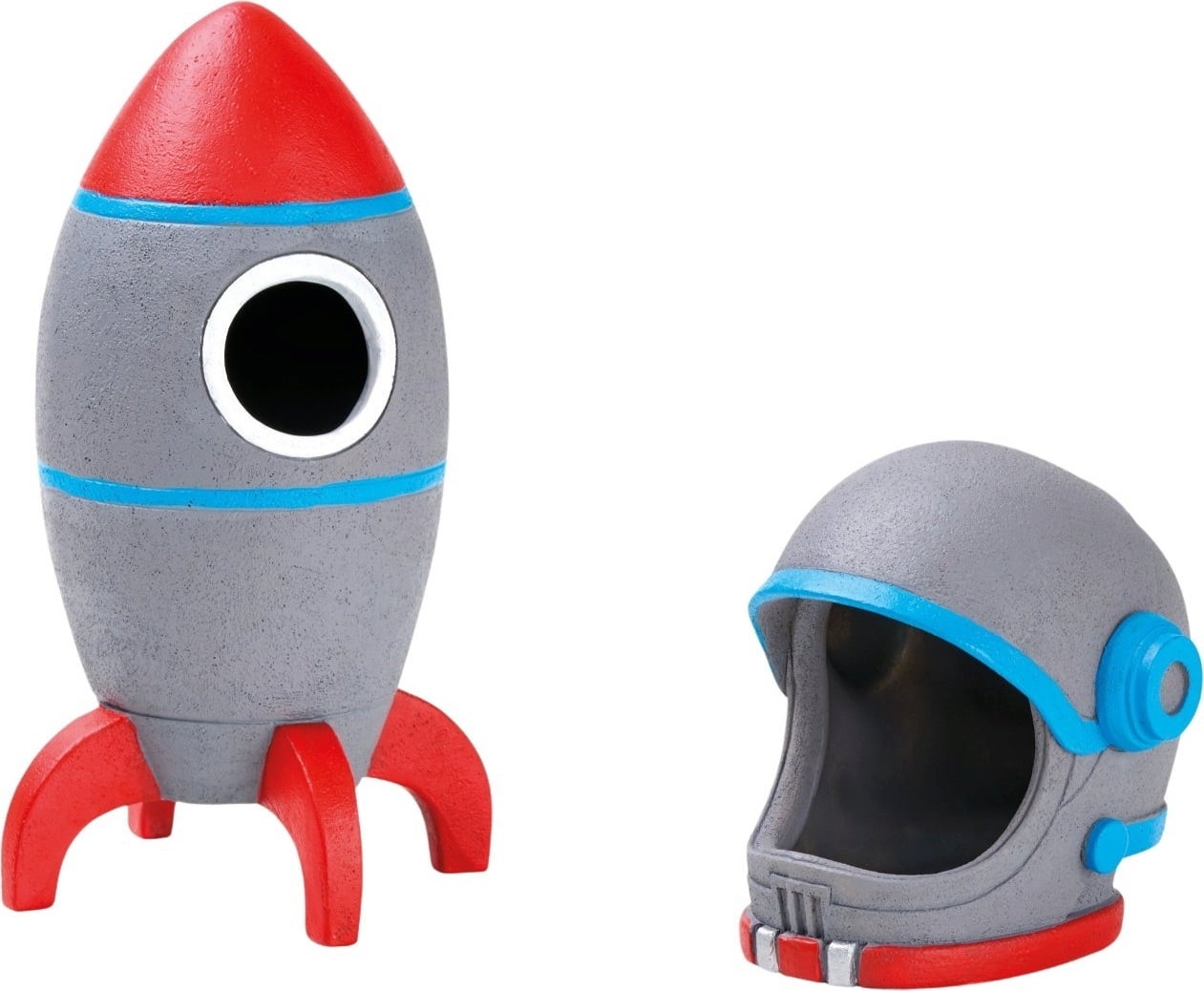 Mit dem Weltall Set von Eden sorgst du bestimmt für einen Blickfang in deinem Süßwasseraquarium! Das Set umfasst eine Rakete und einen Helm, beides in modernen, kräftigen Farben gehalten.