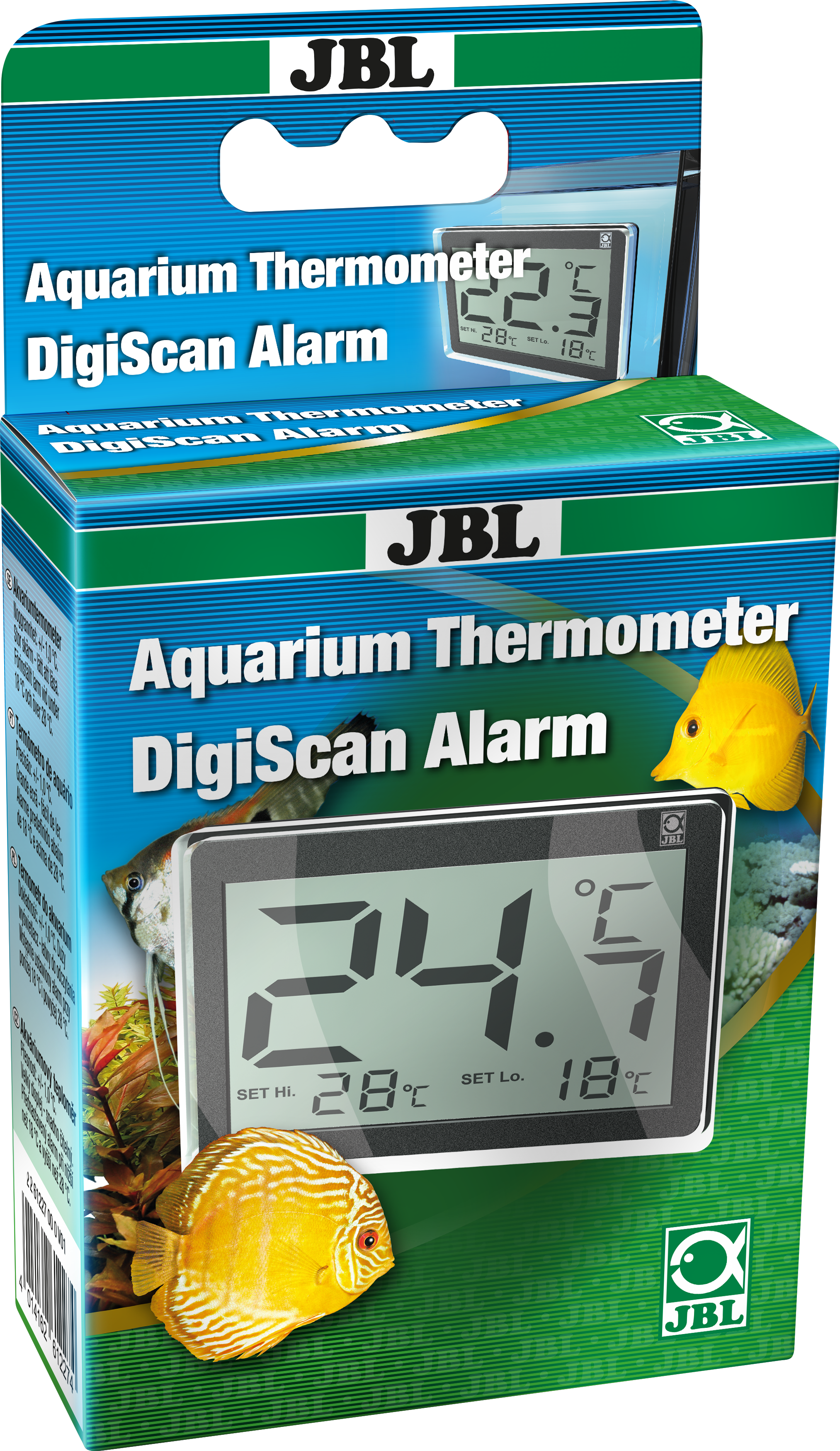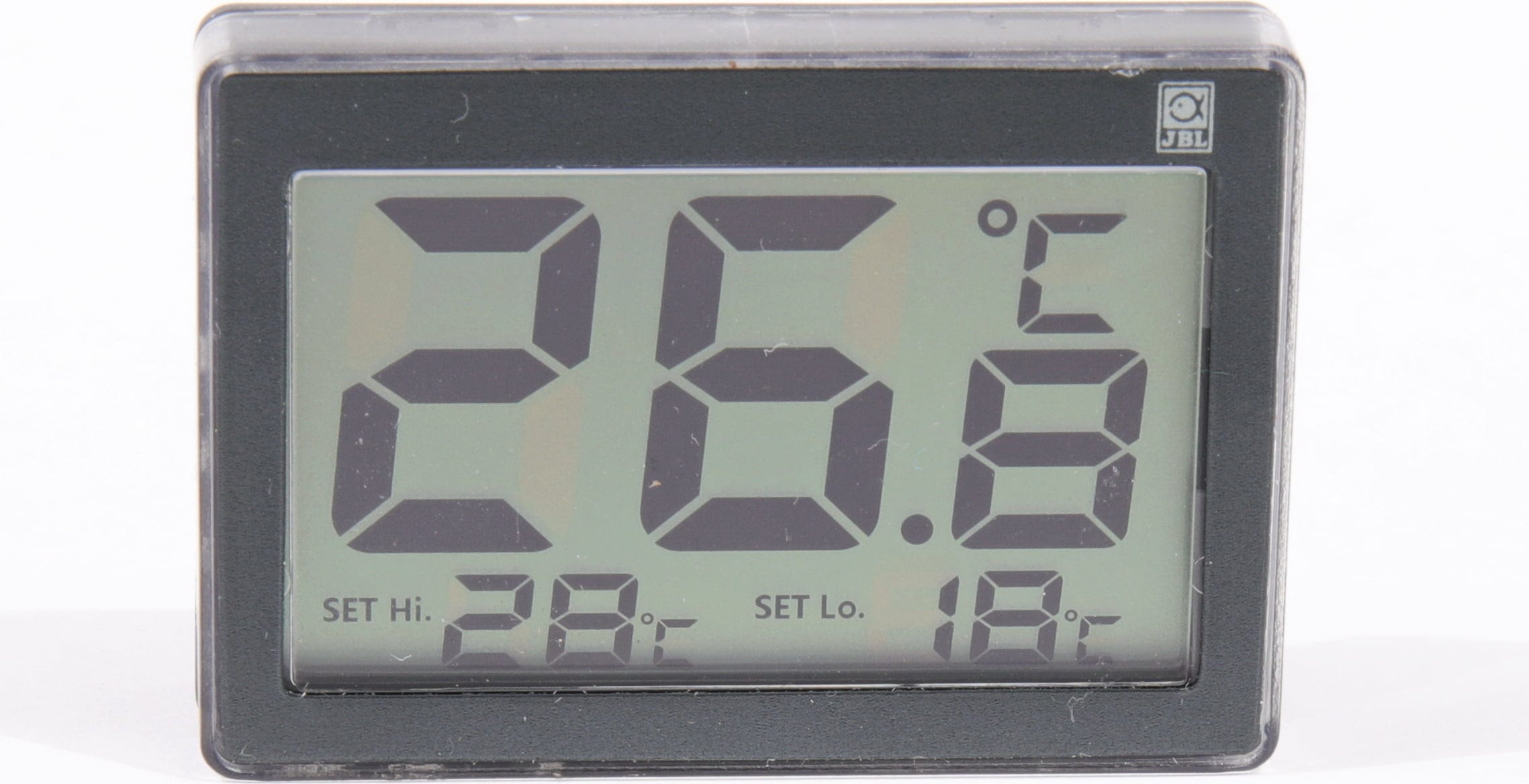 Mit diesem digitalen Scheibenthermometer von JBL behältst du die Lebensbedingungen in deinem Aquarium jederzeit präzise im Blick, ohne dass störende Technik im Becken die Optik ruiniert! Du klebst das kompakte Gerät ganz einfach von außen auf die gereinigte Aquarienscheibe. Durch den direkten Kontakt wird die Wassertemperatur exakt über die Rückseite des Thermometers übertragen und dir in gut lesbaren, 1,8 cm hohen Ziffern auf dem Display präsentiert.
