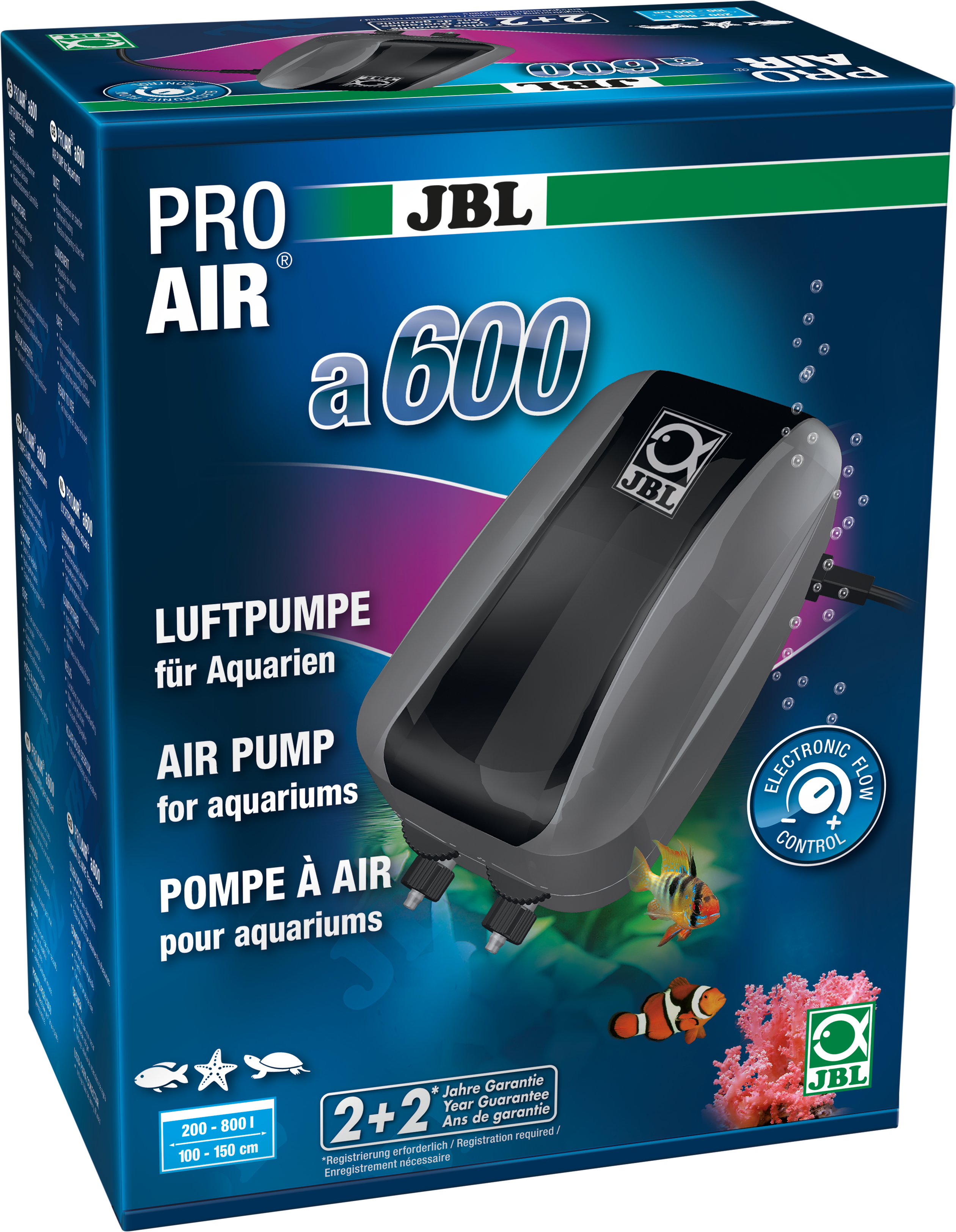 Die JBL ProAir a600 bietet dir ein anschlussfertiges Komplettset, das keine Wünsche offenlässt! Mit einer beeindruckenden Luftleistung von 600 Litern pro Stunde und einem geringen Stromverbrauch von nur 10 Watt ist diese Pumpe ein echtes Kraftpaket für dein Becken. Damit die Ruhe in deinem Wohnzimmer nicht gestört wird, setzt JBL auf eine innovative Geräuschreduzierung: Eine schalldämpfende Luftkammer, vibrationshemmende Gummifüße und eine verstärkte Gehäusewand sorgen dafür, dass die Pumpe flüsterleise arbeitet.
