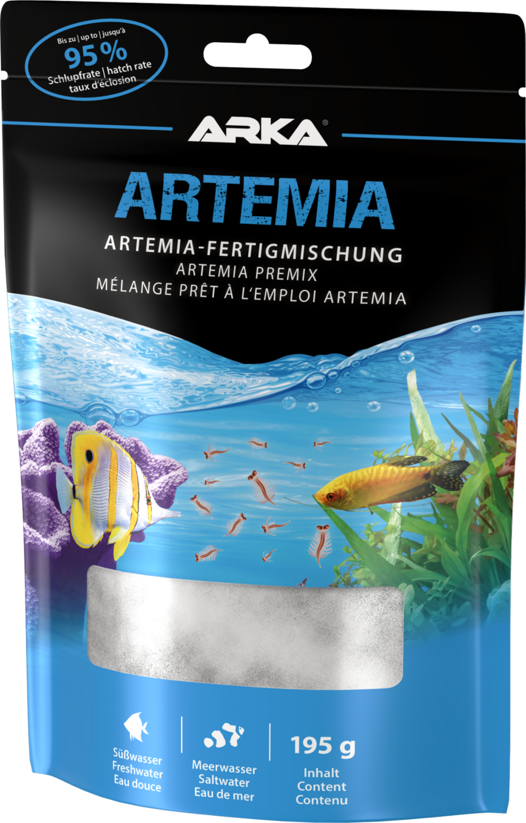 Das Buffet ist eröffnet! Artemia versorgt deine Lieblinge mit frischem Lebendfutter vom Feinsten: Die Fertigmischung aus Salz und Artemia-Eiern sorgt im Nu für leckere, frische Artemia-Krebse - ideal zur Fütterung von Korallen, niederen Tieren und Jungfischen.
